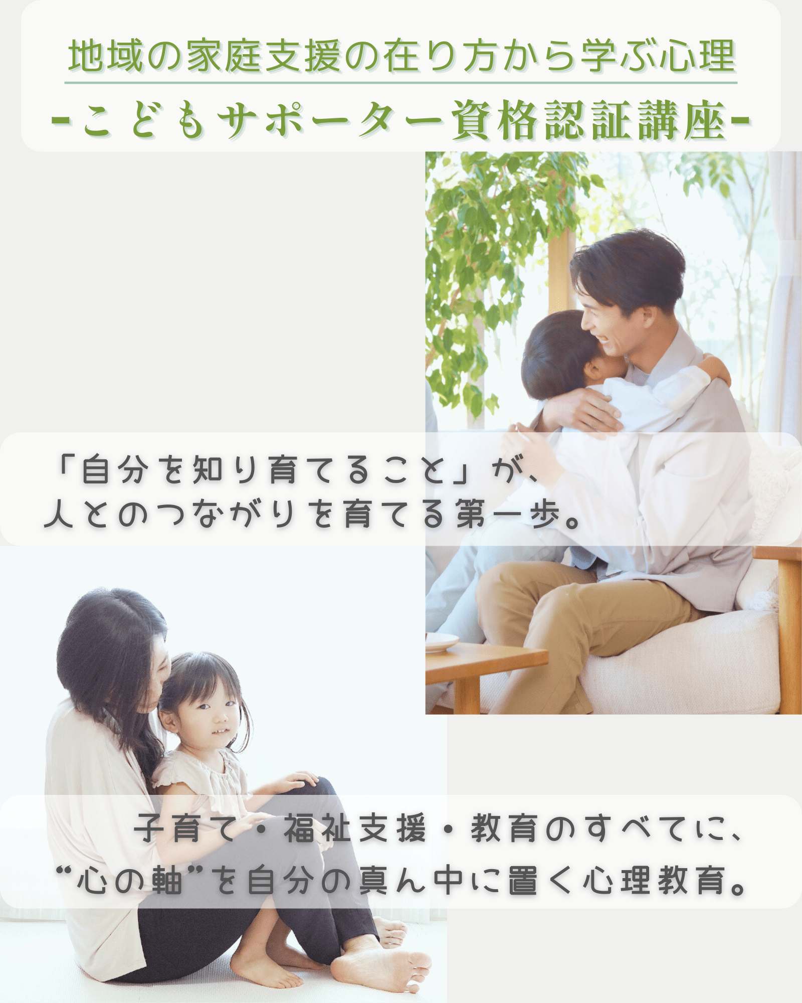 心理カウンセラーとしてのこどもサポーター資格認証講座にまとめました。